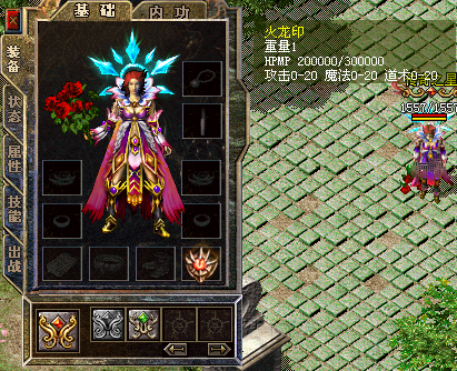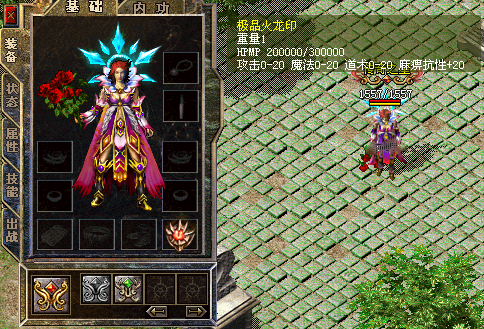 玩家装备极品火龙印,自身或英雄攻击、魔法、道术上限增加20点,极品火龙印自身具备麻痹抗性+20,极品火龙印的持久度用魔血石来维持,同时发挥魔血石作用;