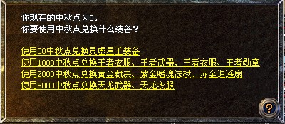 2、 每个玩家可以多次使用中秋点兑换任意极品装备奖励;