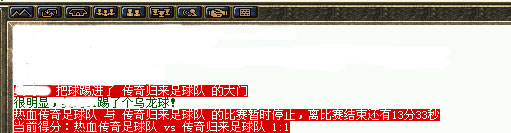 【比赛场地】全明星联赛传奇主场,比赛客户端为《传奇·世界杯》专用客户端(51.8M),也即球王争霸赛时所用的客户端。