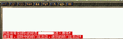 1、每位参赛人员在进入比赛场地时,游戏内都会有红字提示,同时还会提示攻守双方的球门位置