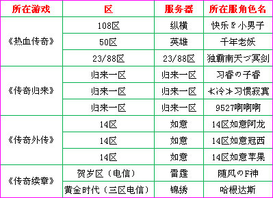 传奇明星队11名主力球员名单(传奇明星队由《热血传奇》、《传奇续章》、《传奇归来》和《传奇外传》的优秀明星球员组建而成)