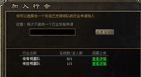 传世明星队球员请加入“传世明星队”行会。