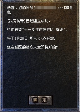 进入新区后,在账号密码输入界面可使用已注册好的盛大通行证账号登录,然后按照往常的步骤进行创建人物,角色创建成功后如下图: