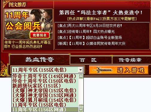传奇史记正待翻起崭新一页,热血春秋也将永久铭刻这一天来之不易的辉煌。《热血传奇》十一周年,即将于万众瞩目下金秋盛放!在这举众欢庆的美好时光,在这开天辟地的历史时刻,应广大热血玩家的热烈期盼,热血传奇11周年专区(155区电信:开天、辟地,156区网通:腾飞)将在9月28日下午14:00传奇11岁生日当天同步开启!海量奖励,欢乐活动,全球大战,11周年狂欢盛典即将全面启动,更多精彩尽在新区体验!