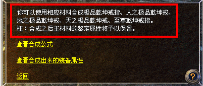 活动详情:玩家前往庄园炼气台处,点击“神戒合成”中的“乾坤系列”,根据合成公式使用相应配方完成对乾坤戒指的升级。