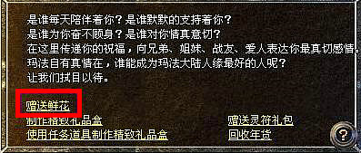 在盟重人缘大使处点击赠送鲜花—〉进入送鲜花活动页面: