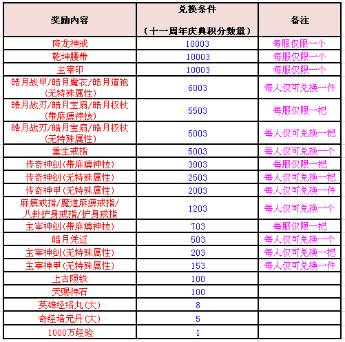 只要拥有“十一周年庆典”积分,即可超值兑换相应奖励!