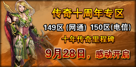 为迎接《热血传奇》十周年这个隆重时刻的到来,经过精心筹备的传奇十周年专区,即将于9月28日开启!承载着千万玩家的感动、携十年热血的激情,具有里程碑意义的崭新天地——传奇十周年专区,即将敞开大门。就让我们整装待发,高唱战歌大踏步迈向新十年的征程!