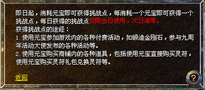 挑战点如何得来?使用元宝,就可获得挑战点。